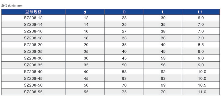 单端面 /平衡性 / 任意旋向 / 橡胶波纹管,SZ208是由二个SZ108背靠背组成,允许采用各种材料进行端面组合,广泛应用于潜水泵.
